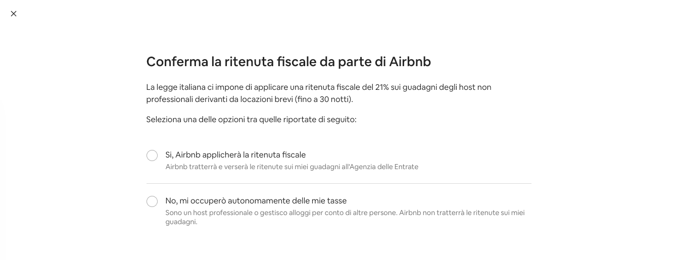 In realtà la domanda non va elusa poiché è direttamente collegata alle decisione del portale di prelevare la ritenuta fiscale del 21%, conosciuta anche come cedolare secca, in automatico, senza che il locatore si debba preoccupare di scadenze e versamenti. Questo perché Airbnb, in seguito al contenzioso con l’Agenzia delle Entrate costato al portale 576 milioni di euro per importi non versati dal 2017 al 2021, ha deciso di adeguarsi alla legge italiana a proposito dei guadagni degli host non professionali derivanti da locazioni brevi fino a 30 notti.