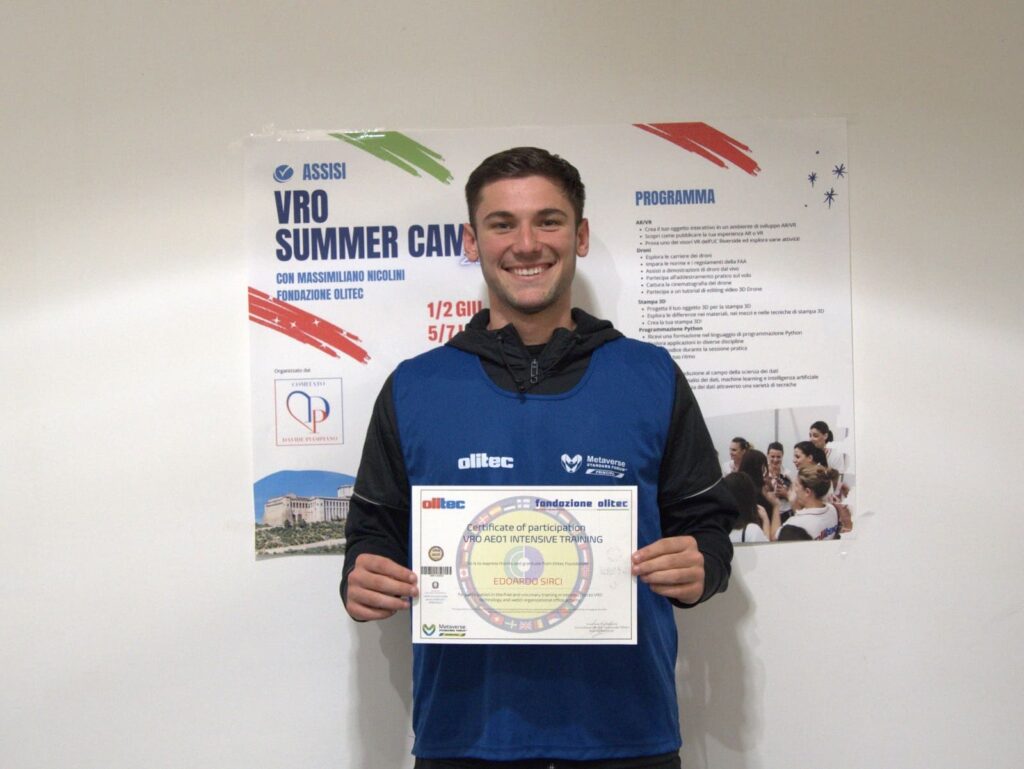 (F.B.)Realtà aumentata, ambienti virtuali e approccio all’analisi dei dati hanno coinvolto i giovani presenti al VRO Summer Camp, la due giorni organizzata sabato 1 e domenica 2 giugno 2024 dal Comitato Davide Piampiano in collaborazione con Olitec. È stato Massimiliano Nicolini, Software Engineer – iA specialist, a guidare le sessioni definite più di addestramento che di informazione, portando tra le sale del Grand Hotel di Assisi il suo carisma e il suo sapere, frutto degli oltre venticinque anni a capo del dipartimento ricerca e sviluppo sulle intelligenze artificiali e VRO di Olimaint.